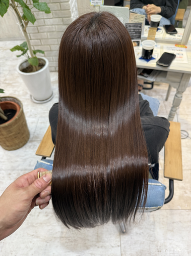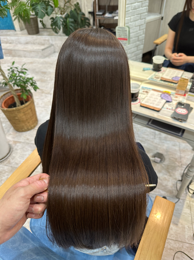 今までの縮毛矯正に比べてほとんどダメージがなく、『本来の髪を守りながら』『手触りをサラサラに』『体験したことのない艶』を実現。